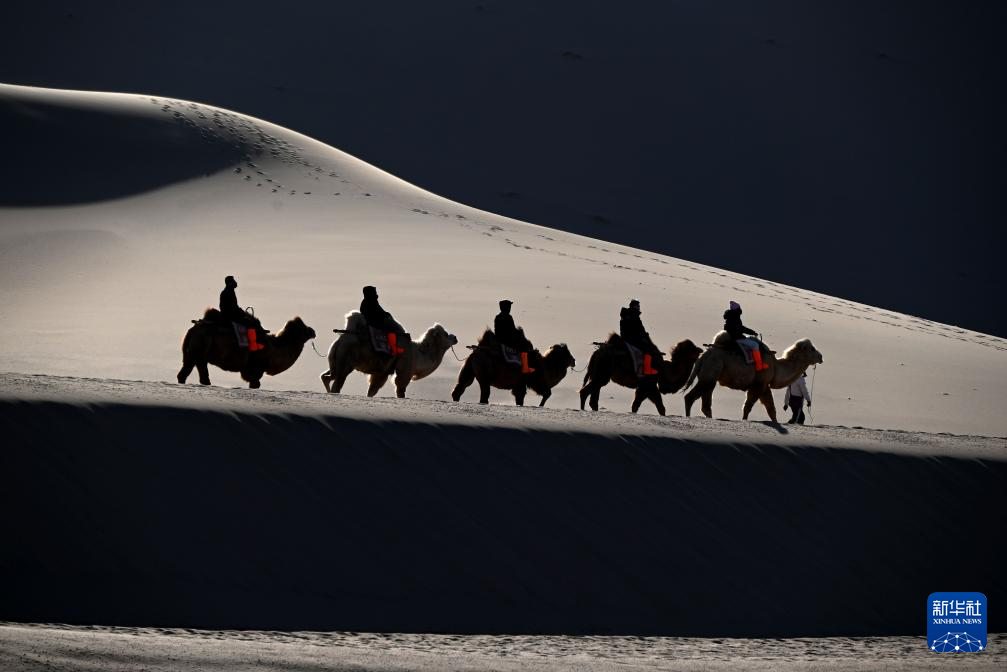 12月1日,游客在甘肃省敦煌市鸣沙山月牙泉景区游览。新华社发(张晓亮 摄)