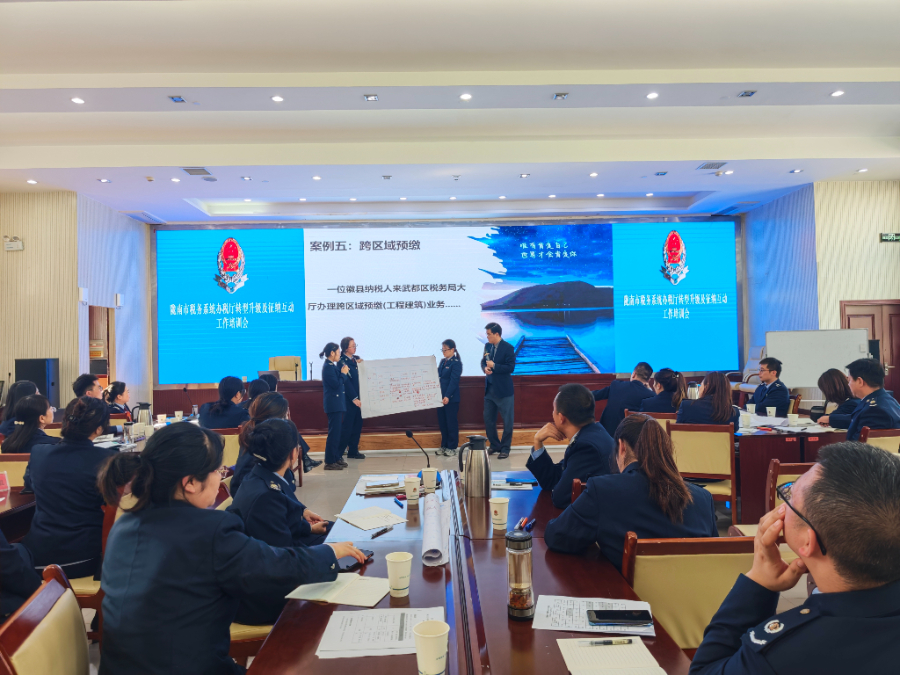 靶向“施治”,转型升级提质增效。基于全面检查形成的详实报告和问题清单,2025年10月30日,陇南市税务局组织召开全市税务系统办税服务厅转型升级暨征纳互动工作提升培训会,市县两级纳服和征管条线工作人员集中参加培训。培训采用“理论讲解 案例剖析 实操演练”的立体模式,围绕三大核心方面,一是严格对标文件要求。按照总局、省局办税服务厅转型升级要求,紧密衔接检查中发现的问题开展培训,重点涵盖办税厅区域优化、导税岗“三预一流”作用发挥、岗位基本礼仪与服务规范辅导、重点业务流程规范及前中后台协同机制建设等方面。二是实操引领模拟驱动。实操演练环节采用场景模拟形式,参训人员分别扮演纳税人、导税员、征纳互动坐席、窗口办税人员等角色,还原真实办税场景,着重演练前中后台流程畅通,优化跨部门协作配合,将服务礼仪与业务操作有机融合,通过情景化演示强化工作人员对服务规范的理解与应用。三是问题研讨整改落实。针对演练中发现的问题,现场人员深入探讨,梳理短板,形成具体改进方案,明确责任分工和时间节点。此次培训不仅提升了参训人员业务能力,更促进了纳税服务工作理念的转变,为全市办税服务厅规范化、标准化、智能化建设奠定坚实基础。