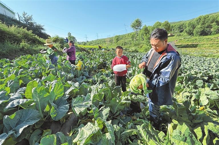 8月11日,榆中县马坡乡上庄村村民在地里抢收成熟的蔬菜。新甘肃·甘肃日报记者 田蹊