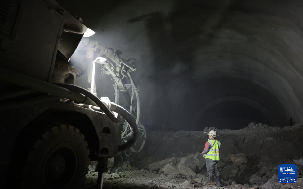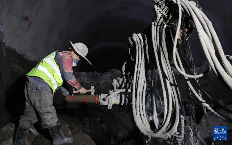 12月2日,中铁二十局的施工人员在兰永临高速公路辛家隧道内作业。新华社记者 陈斌 摄