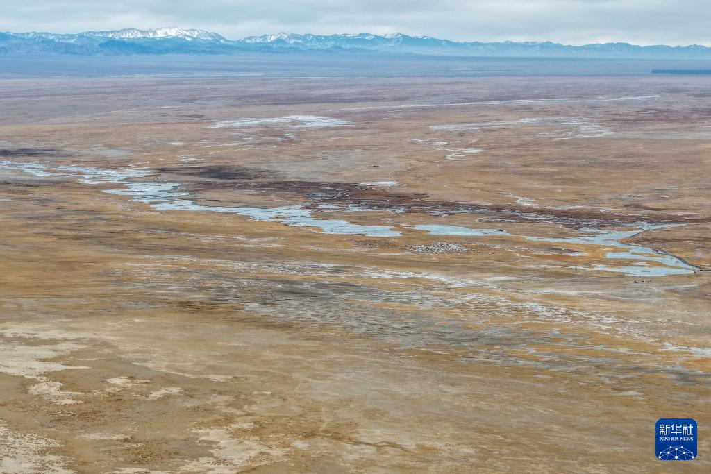 这是11月16日在甘肃省酒泉市阿克塞县阿伊纳乡拍摄的连接大、小苏干湖的水道(无人机照片)。新华社记者 郎兵兵 摄