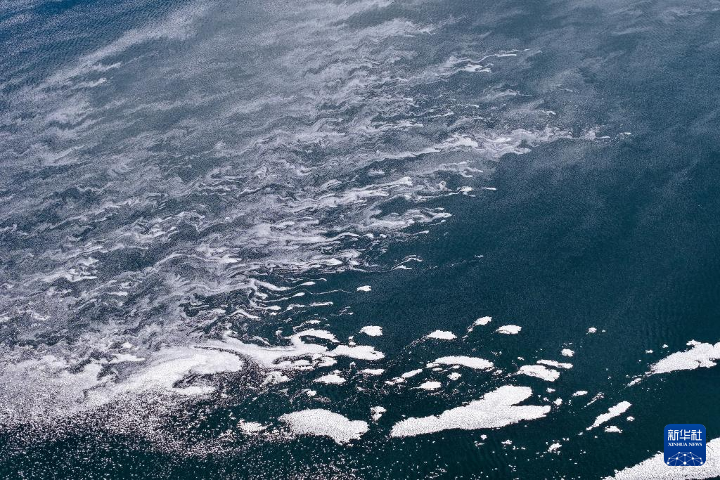这是11月16日在甘肃省酒泉市阿克塞县阿伊纳乡拍摄的大苏干湖结冰湖面(无人机照片)。新华社记者 郎兵兵 摄